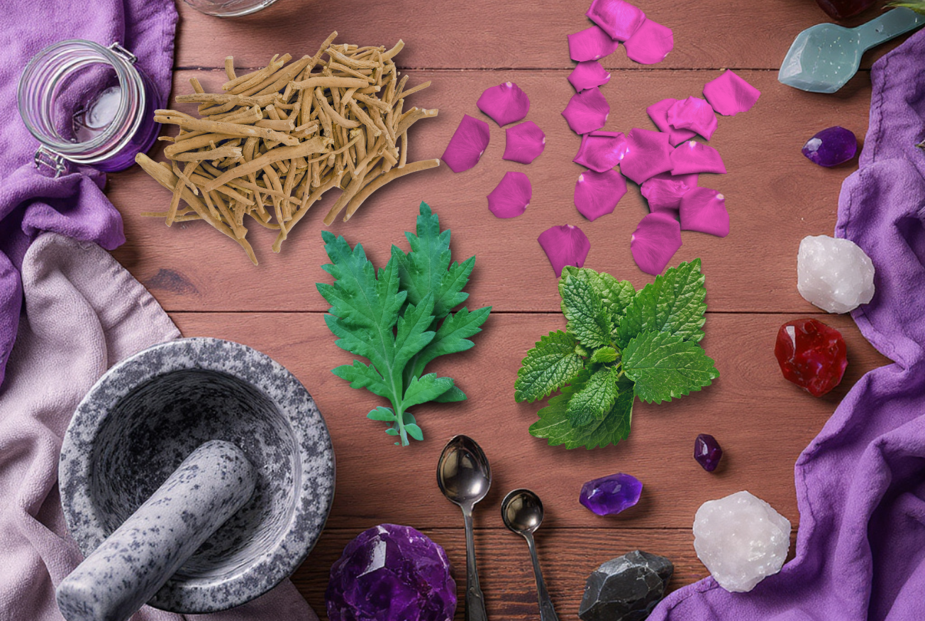 Optimal herbs: Adaptogens (ashwagandha, rhodiola) + heart-opening plants (rose, hawthorn)
